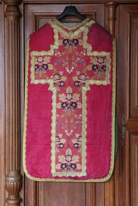 POP | Plateforme ouverte du patrimoinechasuble, étole de clerc, manipule, voile de calice, bourse de corporal (ornement rouge)