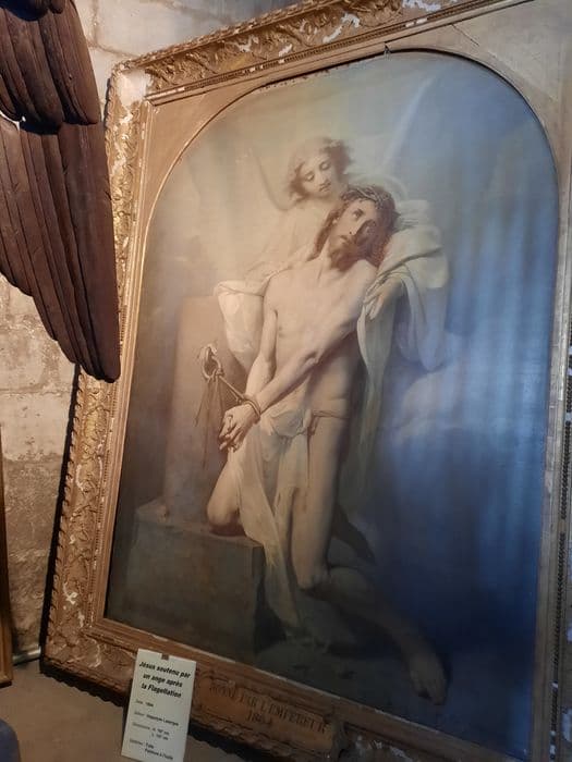 tableau et son cadre : Jésus soutenu par un ange après la Flagellation