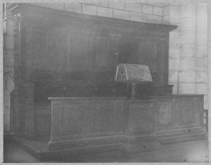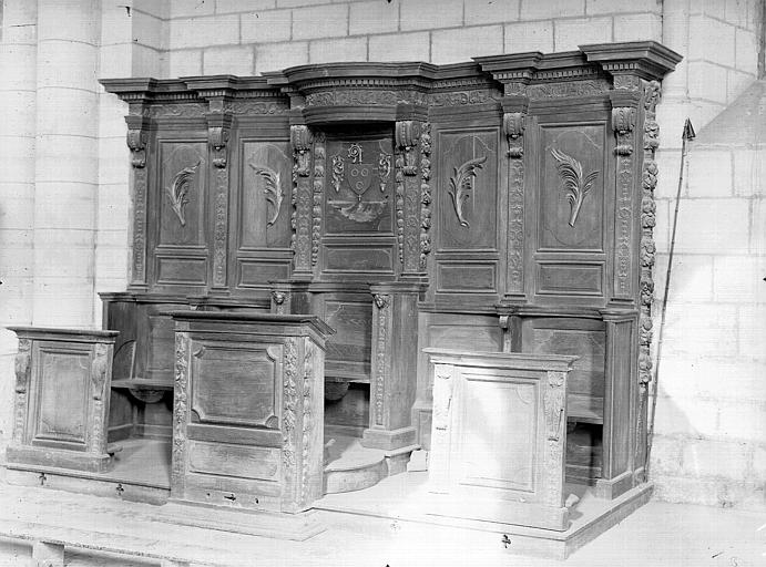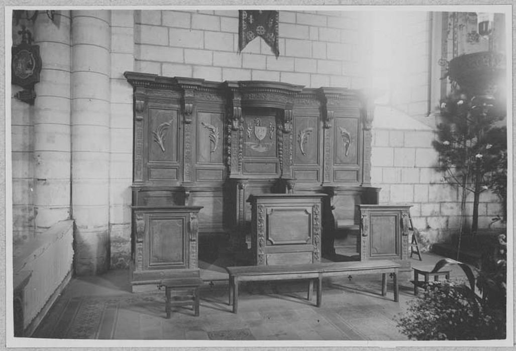 Ces stalles étaient jadis au nombre de 17. 9 furent donnés dans le courant du 19e siècle à l'église de Vouneuil-sous-Biard où elles ont disparu. Auparavant, elles étaient placées au fond de l'abside, celle de l'abbé dans l'axe de l'église.