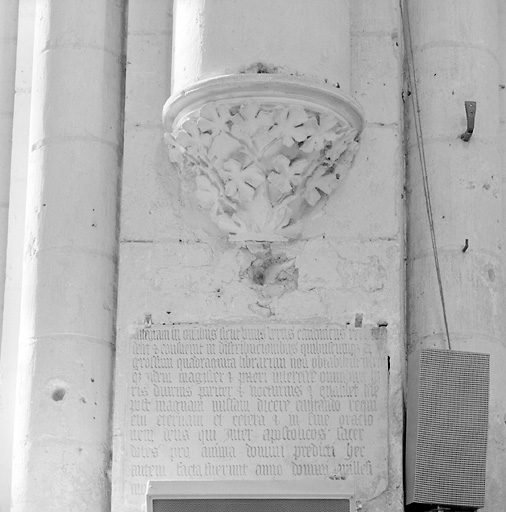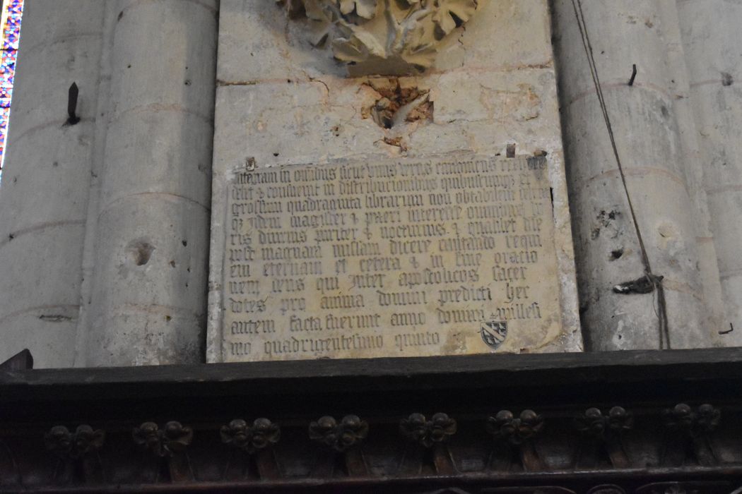 résumé : ces deux inscriptions rappellent la fondation de la Psalette et le lieu de sépulture de l'évêque SIMON DE CRAMAUD ; 1405