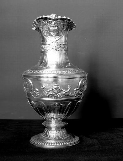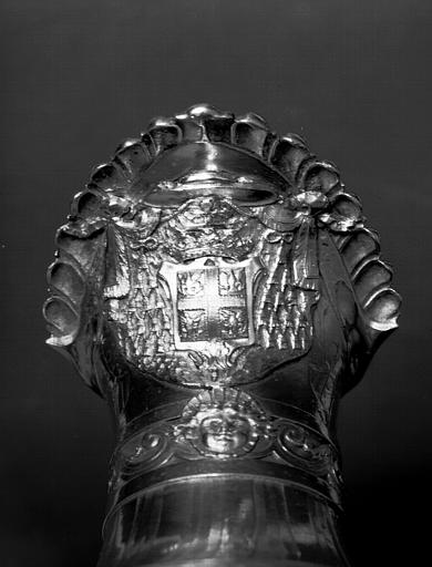 Cette aiguière épiscopale a dû être offerte au cardinal Montmorency-Laval lors de son élévation au titre de cardinal en 1789 ; elle passa de ses mains au chapitre de la cathédrale de Poitiers en 1831