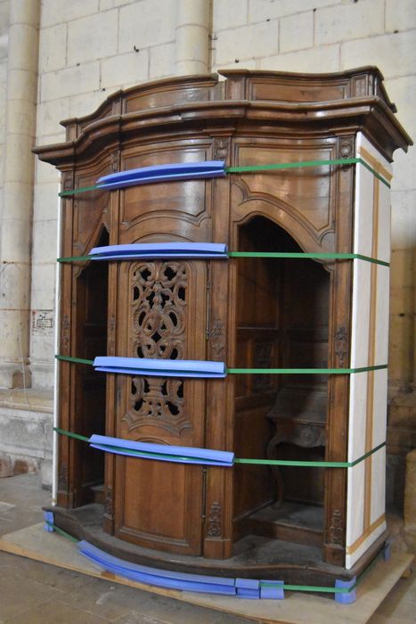 Ces confessionnaux ont d'abord été en bois naturel, puis peints en vert olive, puis repeints en bronze artistique et enfin en faux bois.