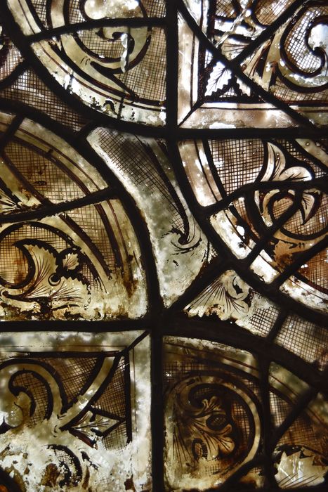 verre transparent (incolore) : grisaille sur verre