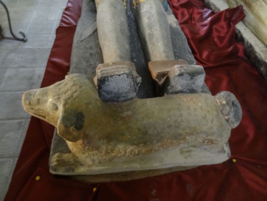 deux hauts-reliefs (gisants) de Pierre de Nuchèze et Charlotte de Brizay
