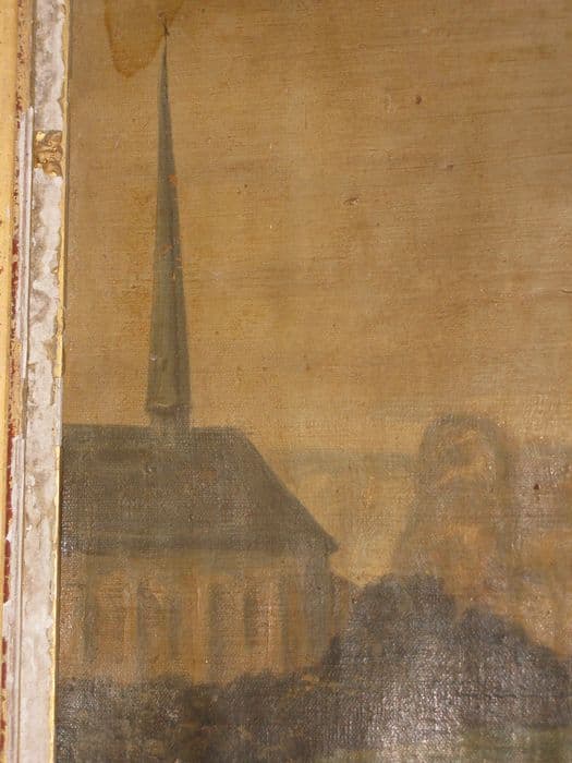 Huile sur toile pourvue d'un cadre en bois doré sur plâtre.
