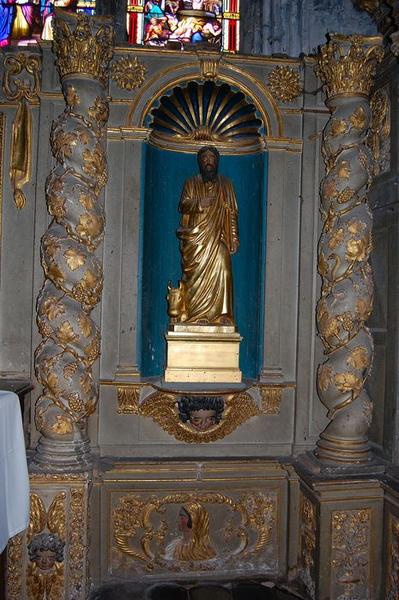 L'important retable a été recomposé pour être adapté aux dimensions de la chapelle nord. L'entablement de la partie centrale a été supprimé. Les quatre statues viennent en remplacement des statues d'origine disparues.