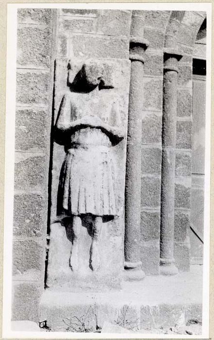 Le gisant est celui d'un chevalier vêtu d'une tunique serrée à la taille dont la partie inférieure s'évase en plis. Un poignard semble fixé à la taille. Les pieds, chaussés de poulaines, sont représentés à plat. La tête, dont la chevelure est coupée au carré, repose sur un coussin rectangulaire. Les mains sont croisées sur la poitrine.