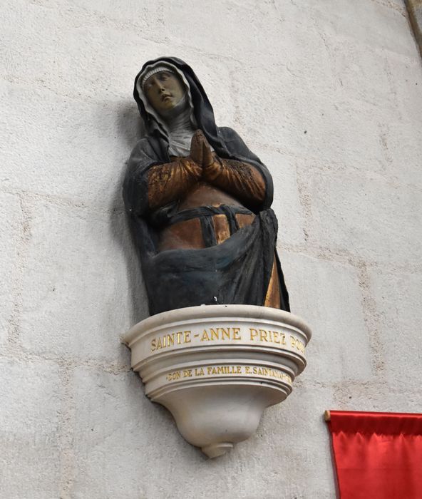 Cette statue du 16e siècle, représentant une sainte en prière, a longtemps été conservée dans une niche sur la façade d'un immeuble de la rue des Ursulines. Elle a été donnée en 1967 par la famille E. Saintaman-Truffy à l'association diocésaine pour l'église d'Eymoutiers.