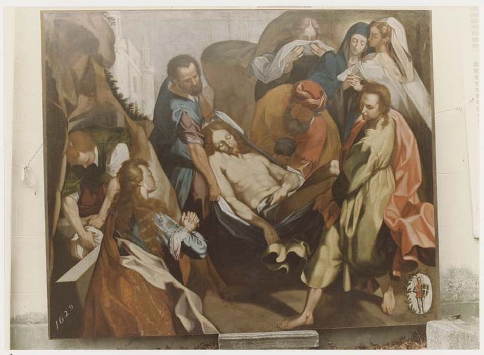Ce tableau intitulé le Portement du Christ mort a été réalisé en 1629 d'après une estampe d'un membre de la famille Sadeler, estampe elle-même réalisée d'après un dessin de Baroccio daté du début du 17e siècle et conservé au musée du Louvre. La présence d'un emblème de la confrérie de saint Domnolet laisse penser que ce tableau pourrait provenir de l'église Saint-Domnolet de Limoges, aujourd'hui détruite.