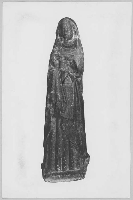 Oeuvre en mauvais état : mains et attributs brisés. La tête a été consolidé- e en 1949.