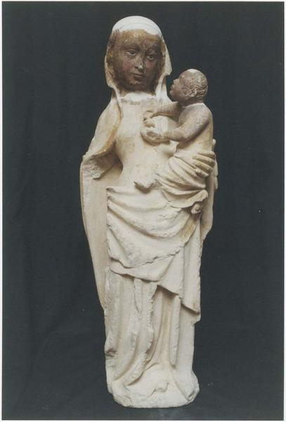 Bras droit de la Vierge et main gauche de l'Enfant mutilés. Oeuvre restaurée par Brigitte Estève en 1997 : dégagement de la polychromie des visages, nettoyage et conservation des traces de polychromie sur les vêtements.