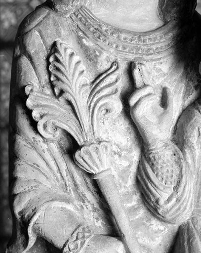 Polychromie à l'état de traces. Les têtes et les couronnes paraissent avoir été reprises au plâtre (?) Oeuvre nettoyée en 1949 par Marcel Maimponte.
