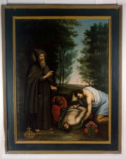 tableau : saint Victurnien guérissant un épileptique (ensemble de 2 tableaux en pendant)