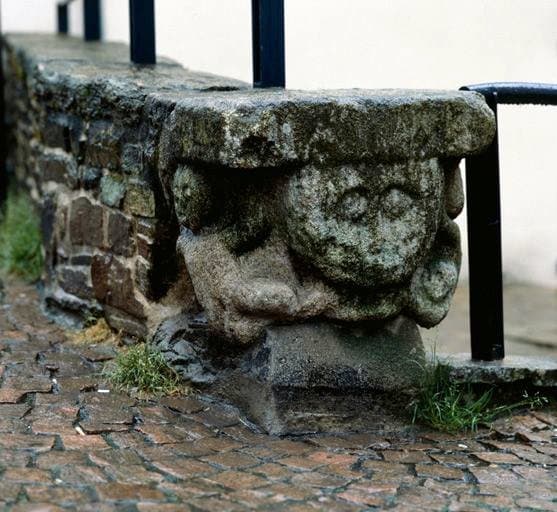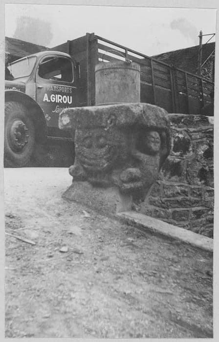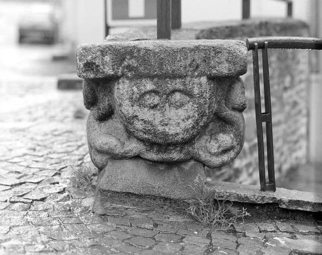 scellé à l'extrémité du muret surmontant la fontaine