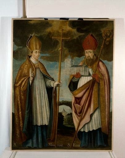 tableau : saint Eloi présentant l'église de Solignac à saint Martial