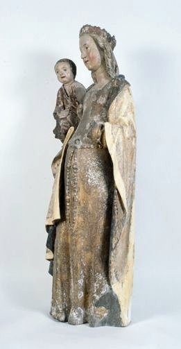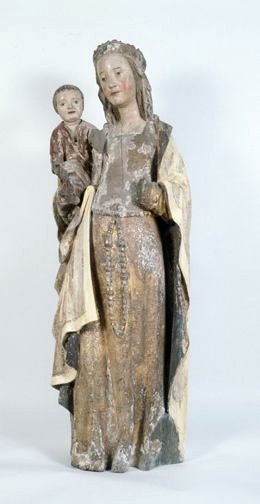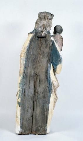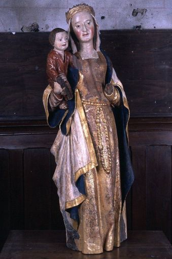 Cette statue de Vierge à l'Enfant de la fin du 15e siècle ou du début du 16e siècle a été découverte dans les écuries de l'ancien presbytère vers 1925-1930.