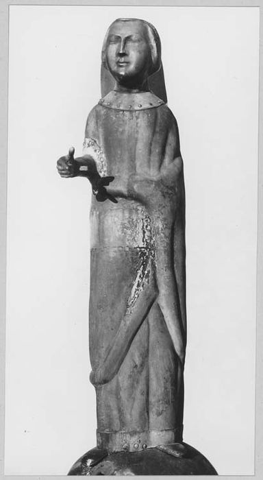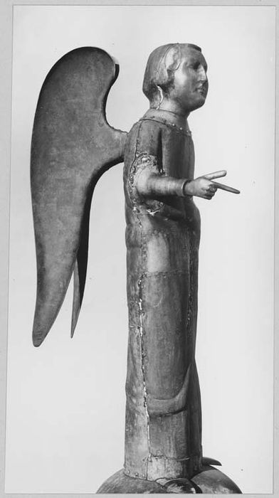 Cette statue d'ange du 13e siècle, placée au sommet de la flèche du clocher, était peut-être mobile et pouvait servir de girouette à l'origine. Elle a été immobilisée en 1618 par l'ajout d'une croix en fer, prolongée par la suite d'un paratonnerre, et n'a pas retrouvé sa mobilité lorsqu'ils ont été retirés.