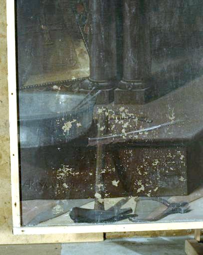 Restauration de la toile par Bruno Tilmant d'Auxy en 1993 et du cadre par Daniel Nicaud en 1995.