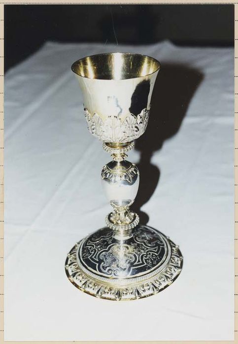 Calice réalisé à Paris entre le 1er octobre 1674 et le 5 août 1677. Le décor ciselé sur la terrasse du pied paraît être plus récent.