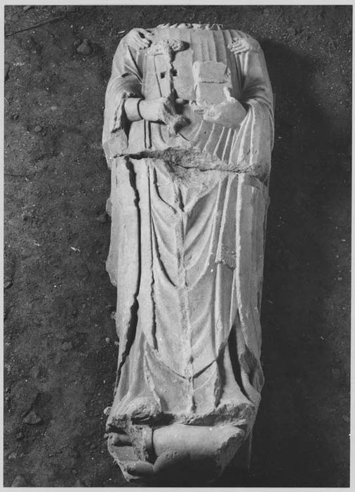 Intitulé de l'arrêté de protection : Gisant épiscopal, calcaire, début 13e siècle.