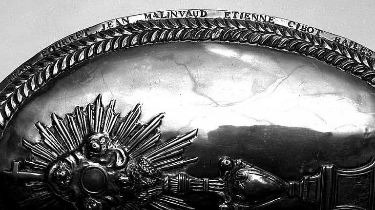 2 panonceaux de cierge de la confrérie de saint Aurélien : le Saint Sacrement