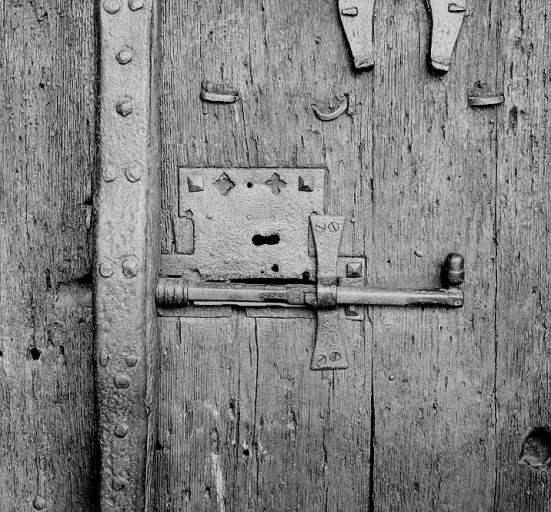 Arrêté : portail sud avec ses fers à cheval et son verrou, XVIIème siècle.