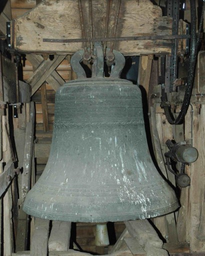 Le battant en service n'est pas ancien. Le battant ancien (85 kg environ) est conservé dans la crypte, ayant été remplacé entre 1975 et 1985.