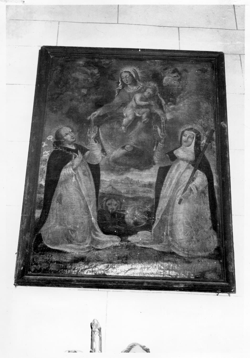 tableau : la Remise du rosaire à saint Dominique et sainte Catherine de Sienne