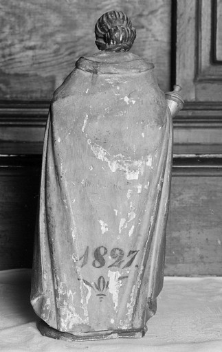 Date 1827 peinte en noir, et inscription Ste Madeleine manuscrite au crayon, au dos de la statue.