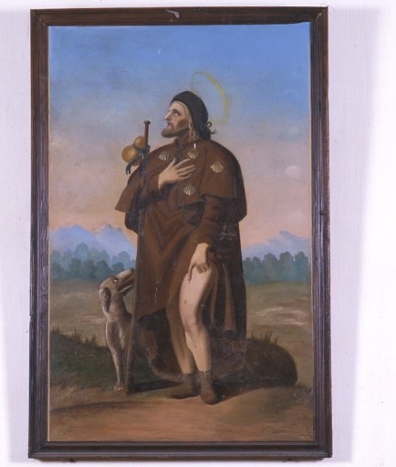 Tableau du 19e siècle représentant saint Roch et le chien. Il existe un autel latéral dédié au saint, qui est décoré de fleurs et feuillages pour sa fête le 16 août.