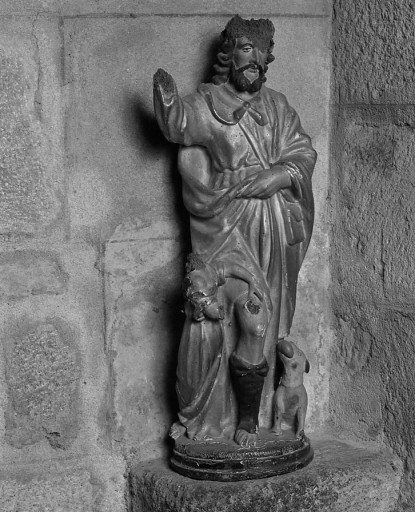 La tête et l'avant-bras droit de l'ange, le haut de la tête et la main droite de saint Roch ont été rongés par la vermoulure. Statue restaurée et fixée par Daniel Desbordes, sculpteur à Châlus, en 1987-1988.