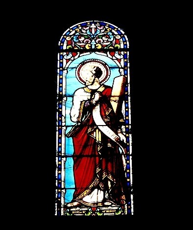 Verrière commanditée par André (?) Michelet, représentant un apôtre, probablement son saint patron. Bien que non signée, cette verrière est si proche par sa composition, le style de l'apôtre et sa bordure végétale néogothique, de celles d'Oradour-sur-Vayres et de La Roche-l'Abeille, que l'on peut l'attribuer avec certitude à Henri Feur, peintre-verrier à Bordeaux, et la dater vraisemblablement de la fin du 19e siècle.