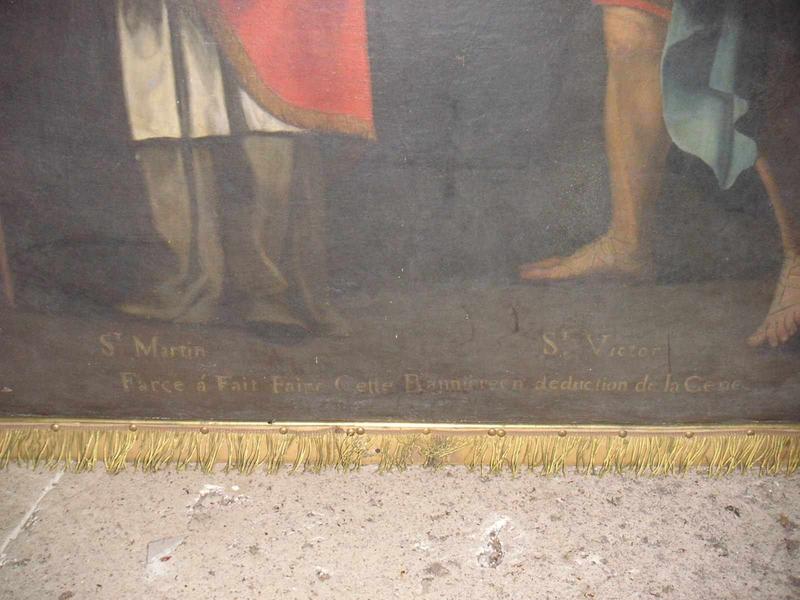 inscription concernant l'iconographie : St. Victor ; St. Martin ; St. Thomas de Cantorbery ; St. Antoine, Abbé ; dédicace : Farce à Fait Faire Cette Bannière.en deduction de la Cene.