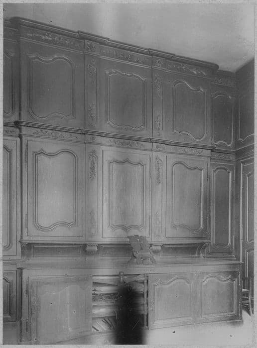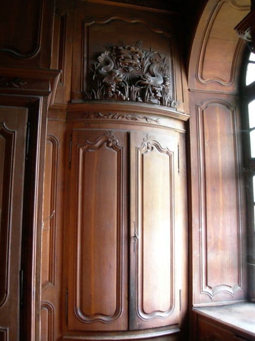 La sacristie est complètement recouverte de boiseries formant armoires, les montants et traverses sont décorés d'ornements.