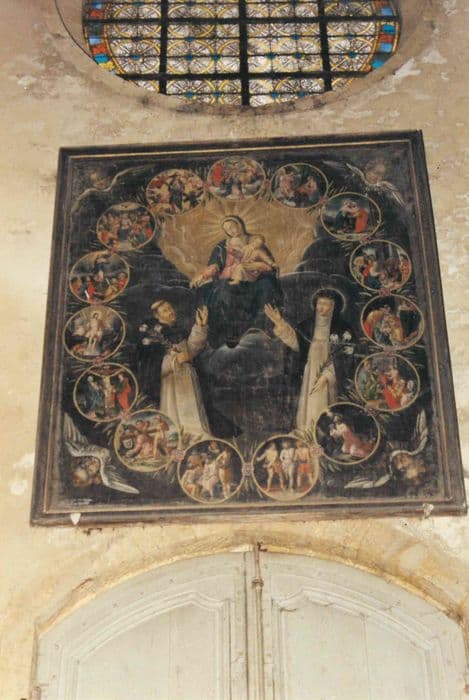 La scène est entourée de quinze médaillons sur les mystères du Rosaire.