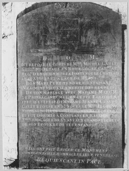 dalle funéraire de Michel Gault, seigneur d'Etaules en Bourgogne, mort le 18 décembre 1773
