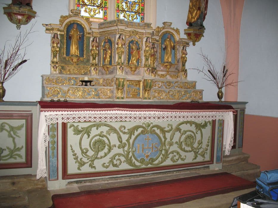 autel ; retable ; tabernacle (2) ; antependium ; statue (3)