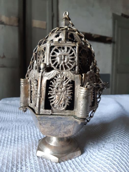 De forme hexagone, il a sur chacune de ses faces une image de la Vierge, ou son Immaculée Conception, entourée de rayons, et croissants de lune sous les pieds. Sur le couvercle, le soleil est répété sur chaque face.