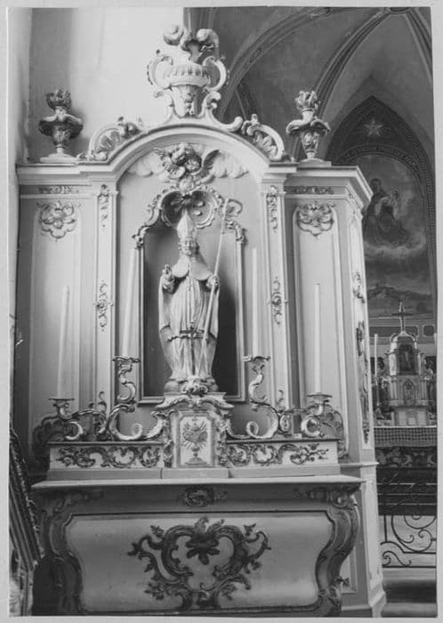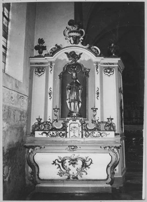 POP | Plateforme ouverte du patrimoineautel secondaire sud, tabernacle, retable et son couronnement, antependium, 4 chandeliers d'autel (porte-cierges), statue : Vierge et l'Enfant, haut-relief : saint Norbert