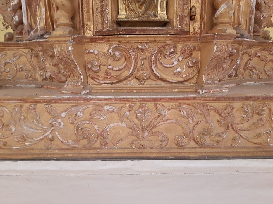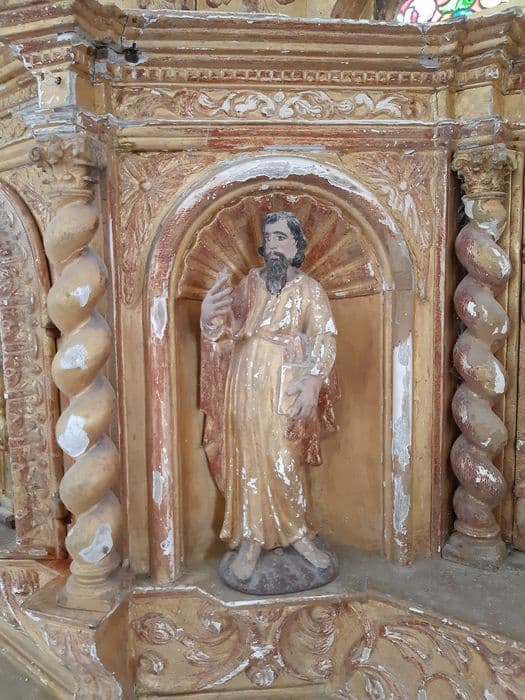 Il est à trois côtés, dont chacun est orné d'une niche, accostée de colonnes torses, contenant une statuette.