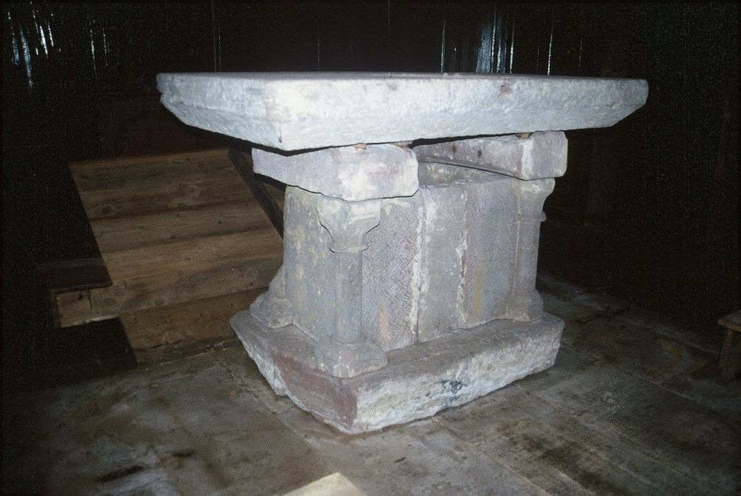 Cet autel roman du 13e siècle appartient en indivision aux communes de La Chapelle-devant-Bruyères, où est localisée l'église Saint-Jacques-du-Stat, et de Vienville.