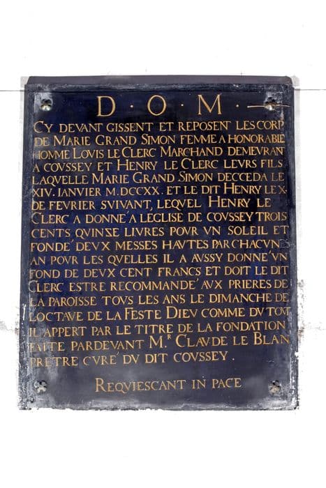 plaque funéraire de Marie Grand Simon ou Grandsimon (inscription funéraire)