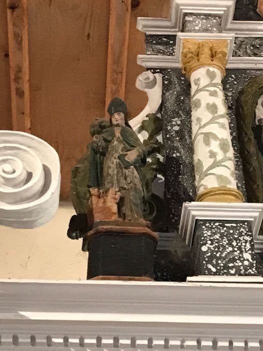 bâton de procession de confrérie surmonté d'une statuette de Saint Nicolas