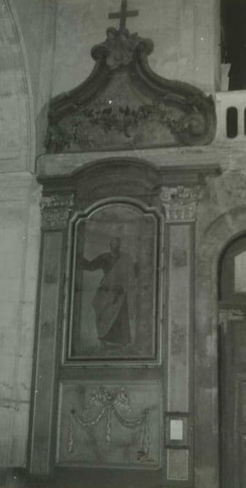 bois : taillé, peint (polychrome, faux marbre) ; toile (support) : peint