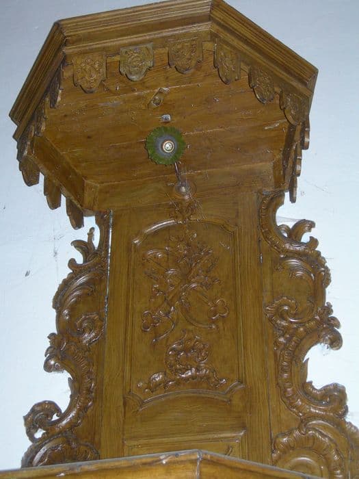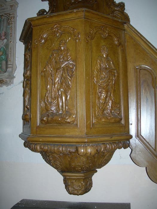 Chaire à prêcher avec cuve ornée d'un décor représentant les Quatre Evangélistes et d'éléments rocaille.