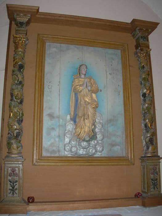 vestiges de l'autel latéral sud (relief de l'Immaculée Conception et colonnes)