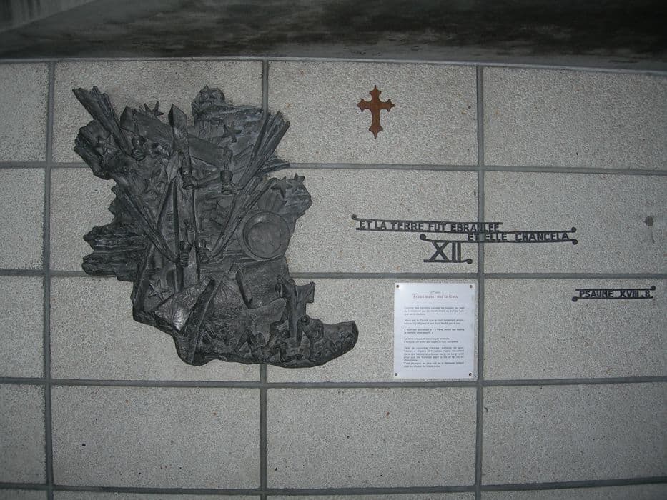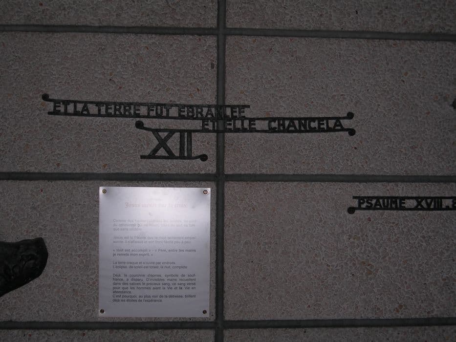 Chemin de croix composé de 14 stations en hauts-reliefs en plomb.