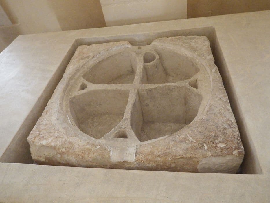 Dalle sculptée d'une croix en bas-relief, aux extrémités pattées, inscrite dans un cercle.