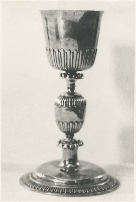 h = 26,3 ; d = 9,4 (Hauteur totale et diamètre de la coupe) ; Pied : h = 16. Coupe : h = 9