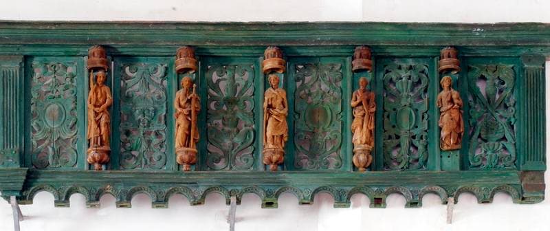 entablement de l'ancienne clôture de choeur : Le Christ et les Douze apôtres
